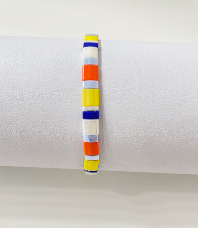Latimea bratarii este de 5 mm. In kit se afla margele suficiente pentru obtinerea unei bratari de aproximativ 22- 24 cm, cu respectarea modelului din imagine.